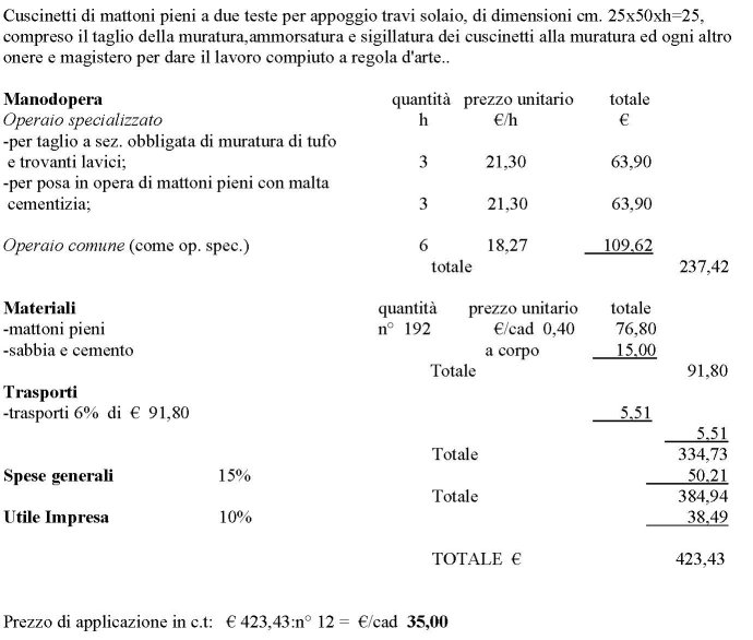 Analisi prezzi per cuscinetti di mattoni pieni
