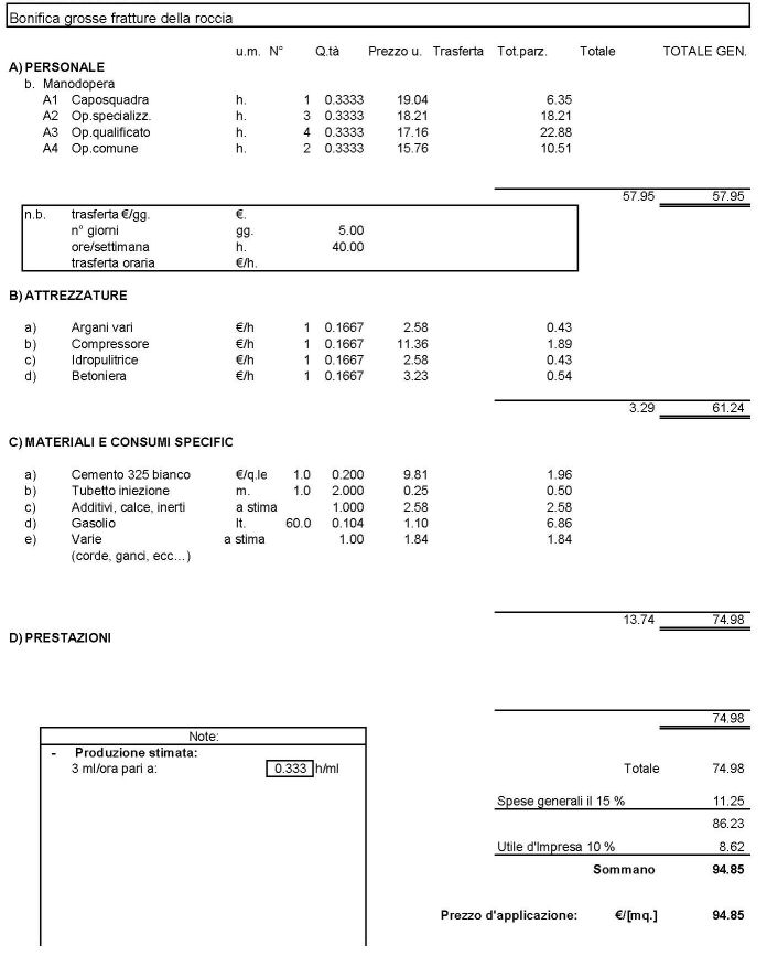 Analisi prezzo per Bonifica Grosse Fratture di roccia