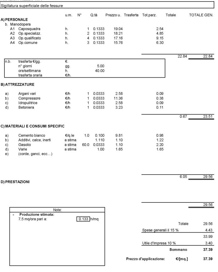 Analisi prezzi per interventi di ingegneria Naturalistica - Bonifica Costoni - Sigillatura superficiale delle fessure