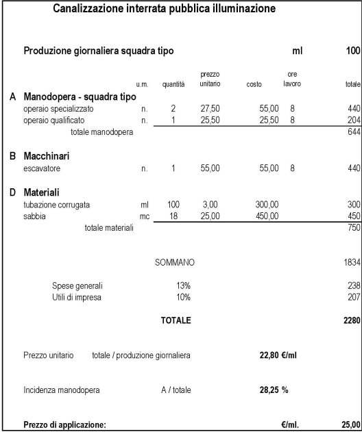 Analisi prezzo per opere stradali:  .
