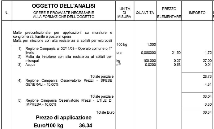 ANALISI PREZZO DI MALTA PER INIEZIONE AI SOLFATI PER MICROPALI