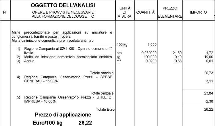 ANALISI PREZZO DI MALTA DA INIEZIONE ANTIRITIRO