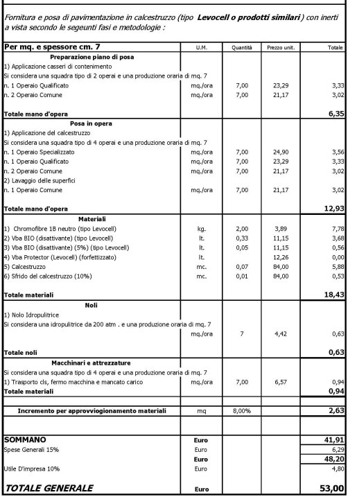 Fornitura e posa di pavimentazione in calcestruzzo tipo Levocell o similari, con inerti a vista secondo le normali fasi metodologiche