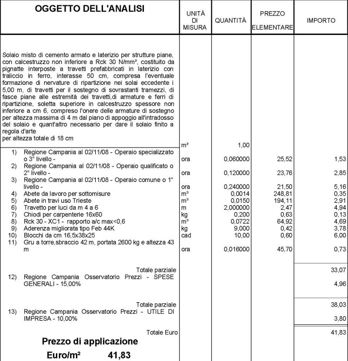 ANALISI PREZZO PER SOLAI LATEROCEMENTO PREFABBRICATO H 18 CM