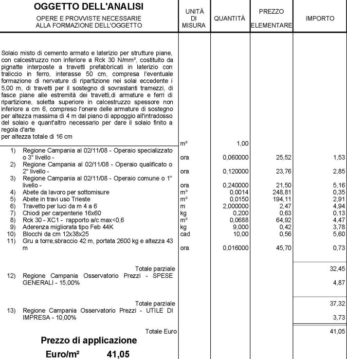 ANALISI PREZZO PER SOLAI LATEROCEMENTO PREFABBRICATO H 16 CM