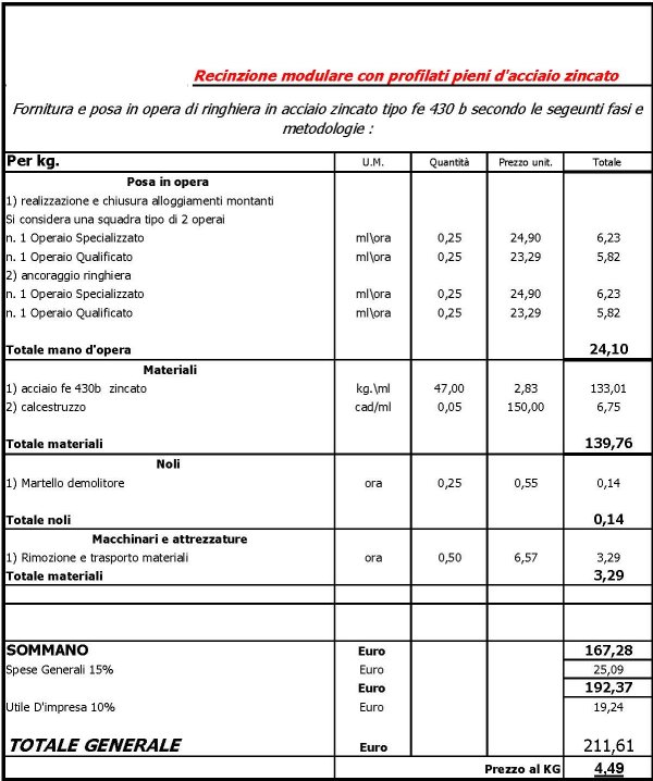 RECINZIONE MODULARE CON PROFILATI PIENI DI ACCIAIO ZINCATO