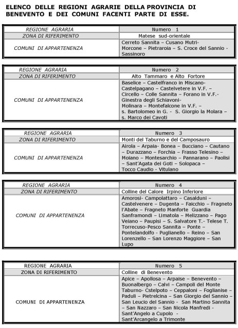 Valori Agricoli Medi della Provincia di BENEVENTO