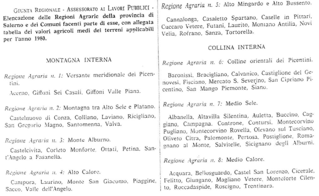 Valori Agricoli Medi della Provincia di SALERNO - Regioni agrarie