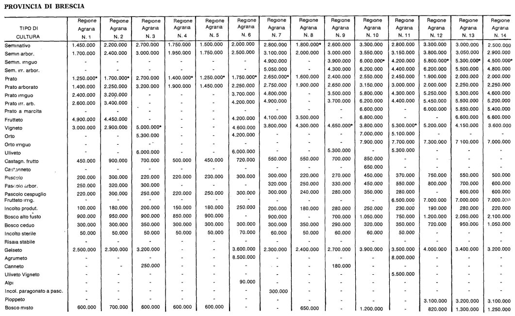 Valori Agricoli Medi della Provincia Brescia - Anno 1976