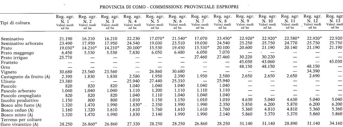 V.A.M. (Valori Agricoli Medi) Validi per la provincia di COMO nell'ANNO 1990