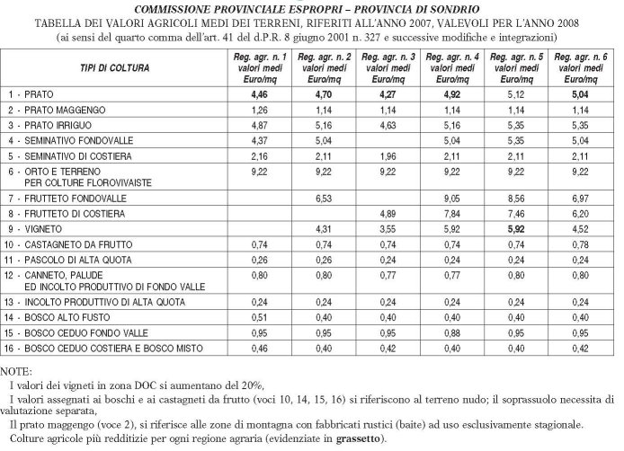 Valori Agricoli Medi della Provincia Sondrio - Anno 2008