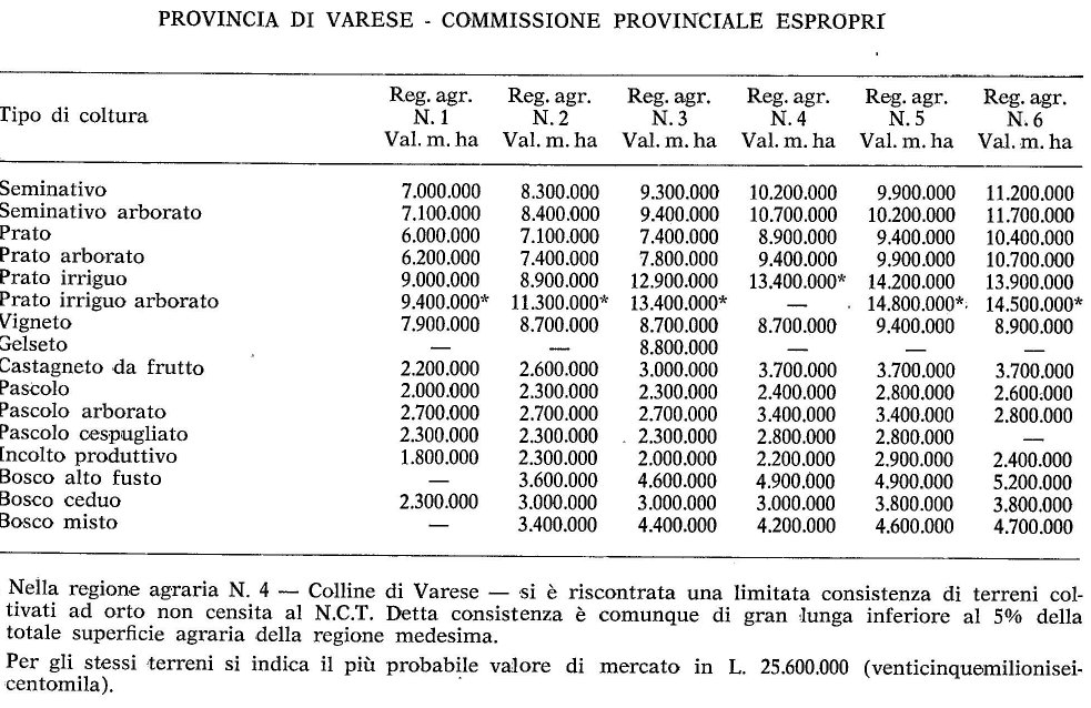 Valori Agricoli Medi della Provincia Varese - Anno 1981
