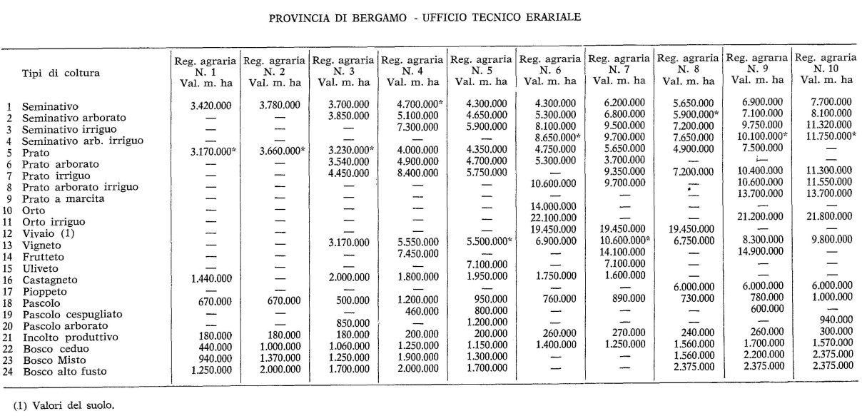 Valori Agricoli Medi della Provincia Bergamo - Anno 1979