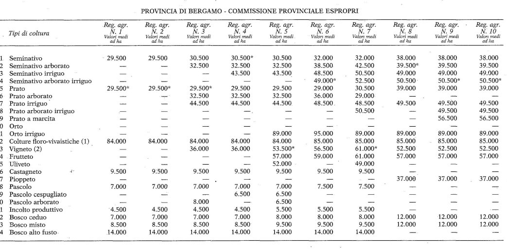 Valori Agricoli Medi della Provincia Bergamo - Anno 1995