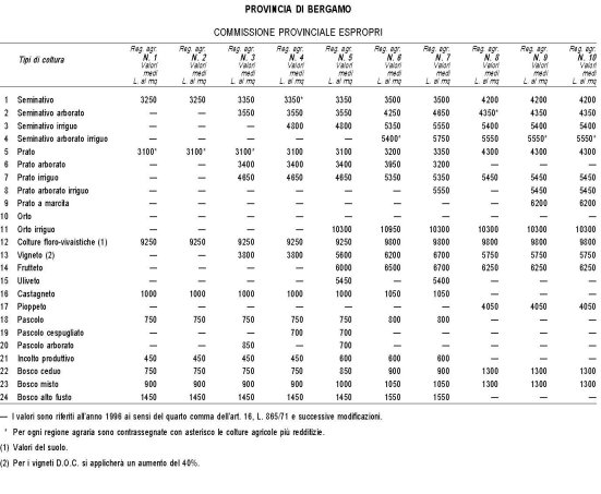 Valori Agricoli Medi della Provincia Bergamo - Anno 1997