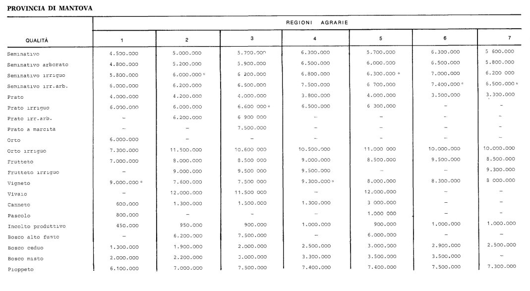 Valori Agricoli Medi della Provincia Mantova - Anno 1977