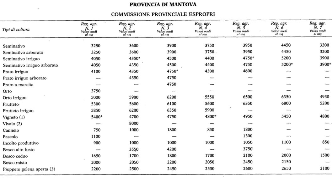 Valori Agricoli Medi della Provincia Mantova - Anno 1996