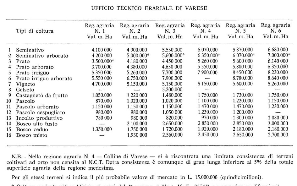Valori Agricoli Medi della Provincia Varese - Anno 1978