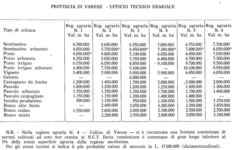 Valori Agricoli Medi della Provincia Varese - Anno 1979