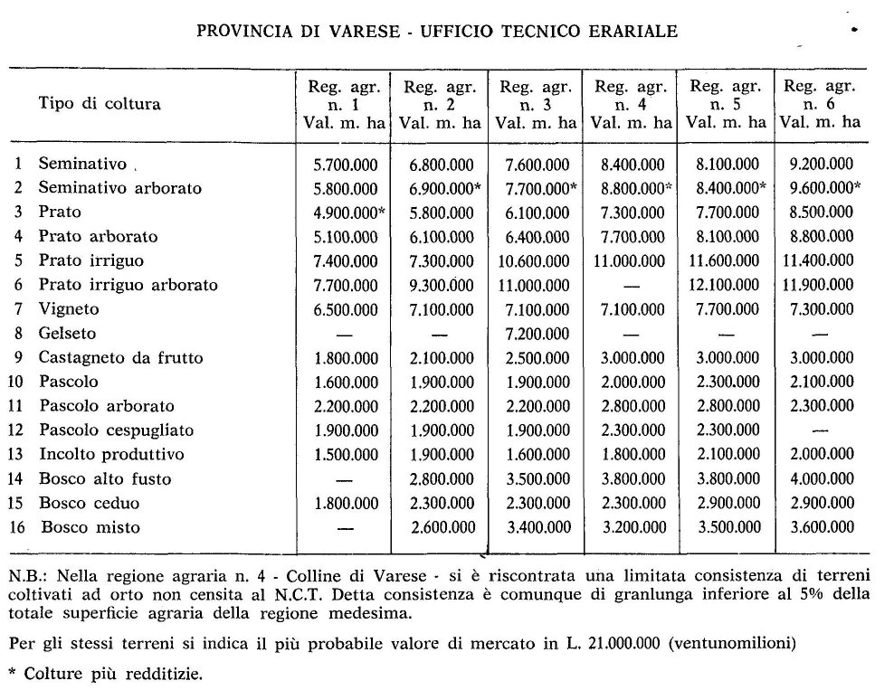 Valori Agricoli Medi della Provincia Varese - Anno 1980